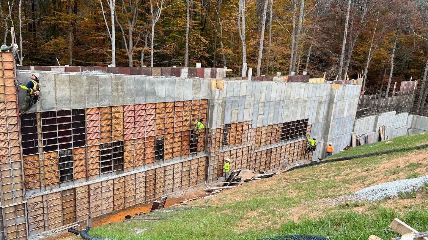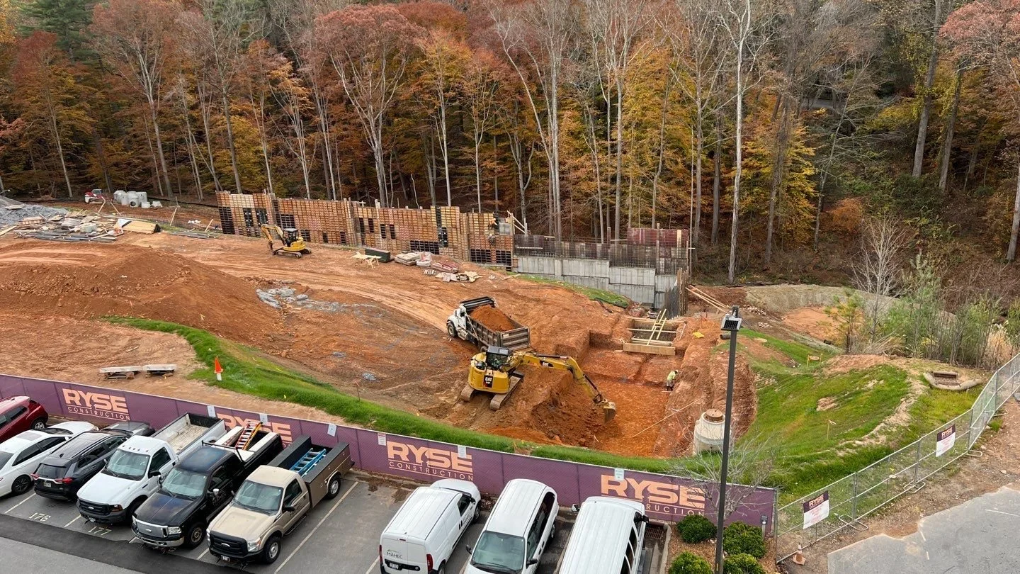 The project is currently underway on a tight, active campus. Successful relocation/installation of enabling work associated with Sewer Main, Campus Storm Drain System, Water Main, Duke Power Loop, Campus Gas Feed and Vibratory Aggregate Piers completed. Completion of Multi-Tiered Cast-In-Place Concrete Foundation Footing/Wall System requiring 20,000 yards of Cut & Backfill with multiple sequences along 25'+ Concrete Wall Systems three feet thick.